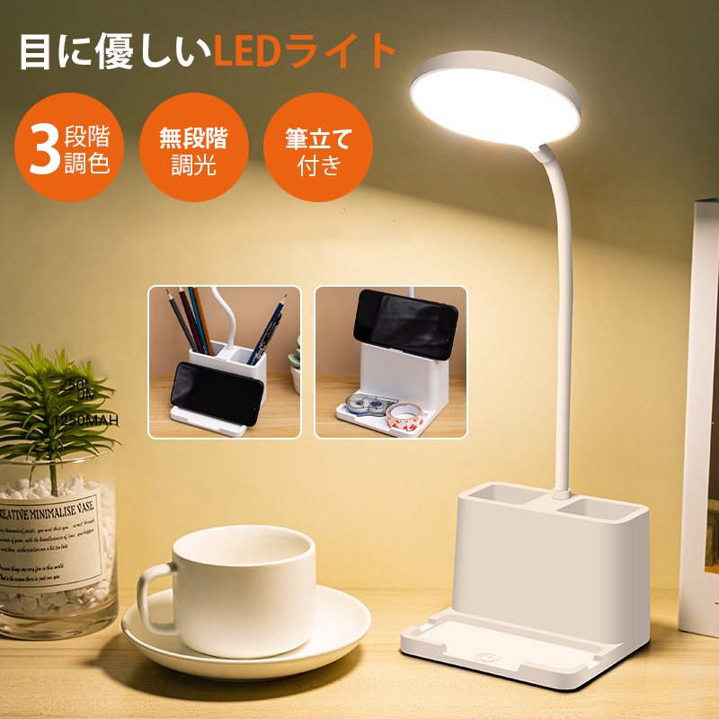 卓上ライト 充電式 目に優しい スマホホルダー 読書灯 卓上照明