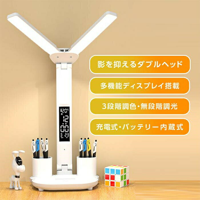デスクライト 学習机 おしゃれ コードレス 時計付 目に優しい 1台多役 LED スタンドライト 充電式 ペン立て 電気スタンド 学習用 ナイトライト 卓上ライト 卓上led 北欧 勉強机 LEDラ
