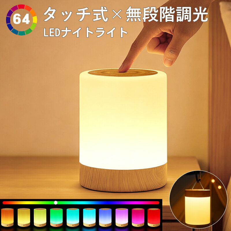 【64色調光調色 ベッドサイドランプ】授乳灯 タッチセンサー式 ナイトライト 1500mAh 充電式・・・