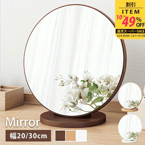 卓上ミラー 鏡 卓上ミラー ナチュラル 丸いミラー 幅20cm シンプル ミニミラー 木製フレーム ・・・