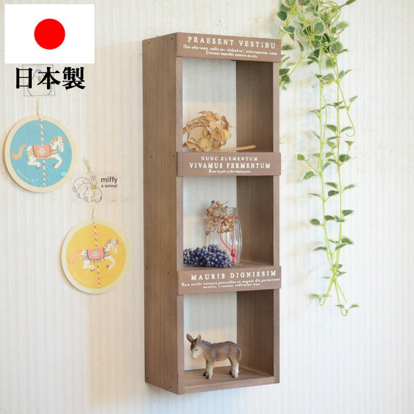 『壁掛け木製3マスウォールシェルフ縦BR』軽量なので賃貸でも安心して取り付けできる棚( 飾り棚 壁 ・・・