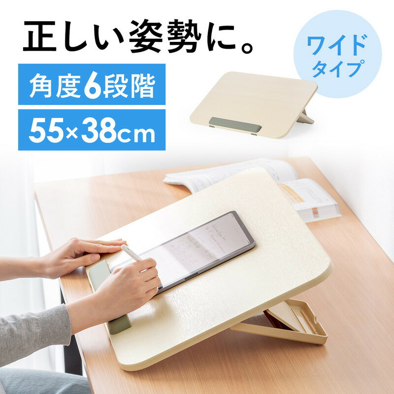 【新品】6段階の角度調整が可能な木製学習台。姿勢矯正や絵描きに最適なワイドタイプ。オンライン授業や読書にも活用できます。