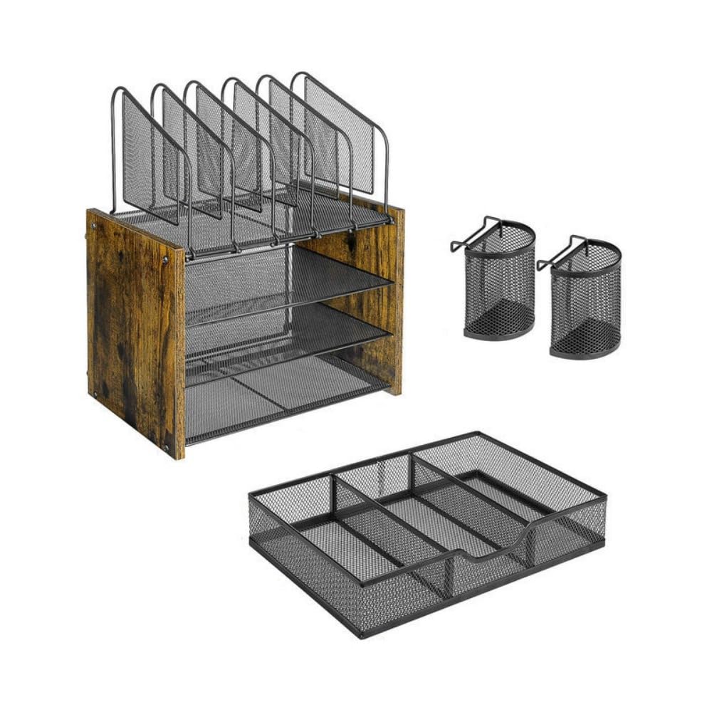 優れた収納力組み立て後:32.6cm x 24cm x 36.5cm(高さはブックエンドを含む)。A4サイズ対応の3層仕切レターケース、5つのファイ