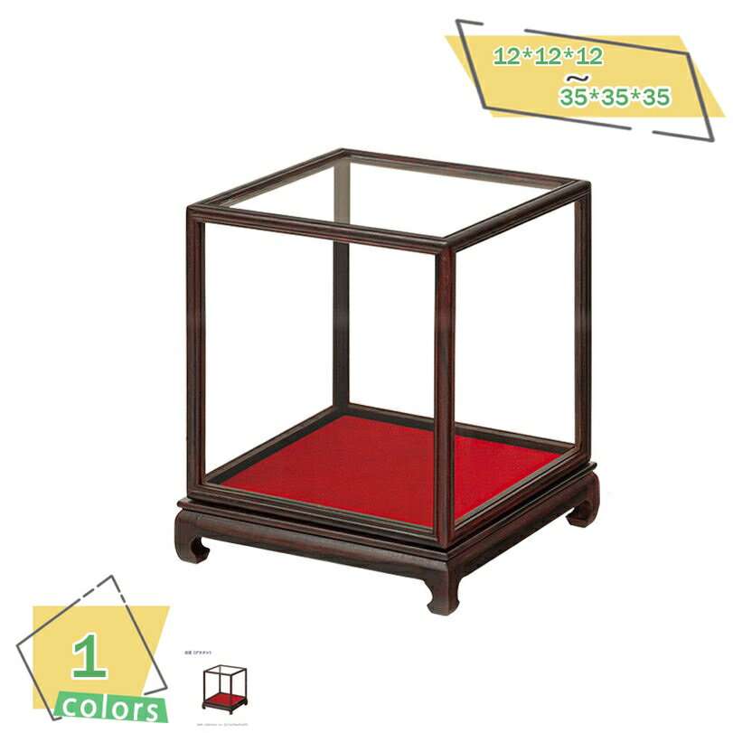 ディスプレイケース 透明ガラス 紫檀調 木製ベース付き 宝籠風 工芸品 骨董品 文玩 置物収納 防塵カバー アンティーク風 卓上飾り棚 小型展示ボックス インテリア用