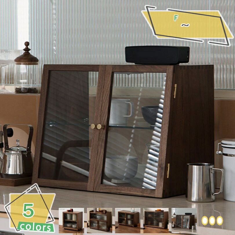 ミニ食器棚 木製 おしゃれ カウンター上収納 卓上 引き戸 コンパクト 透明扉 上置き棚 小物収納 一人暮らし キッチンラック 台所収納 オーク/ウォールナット