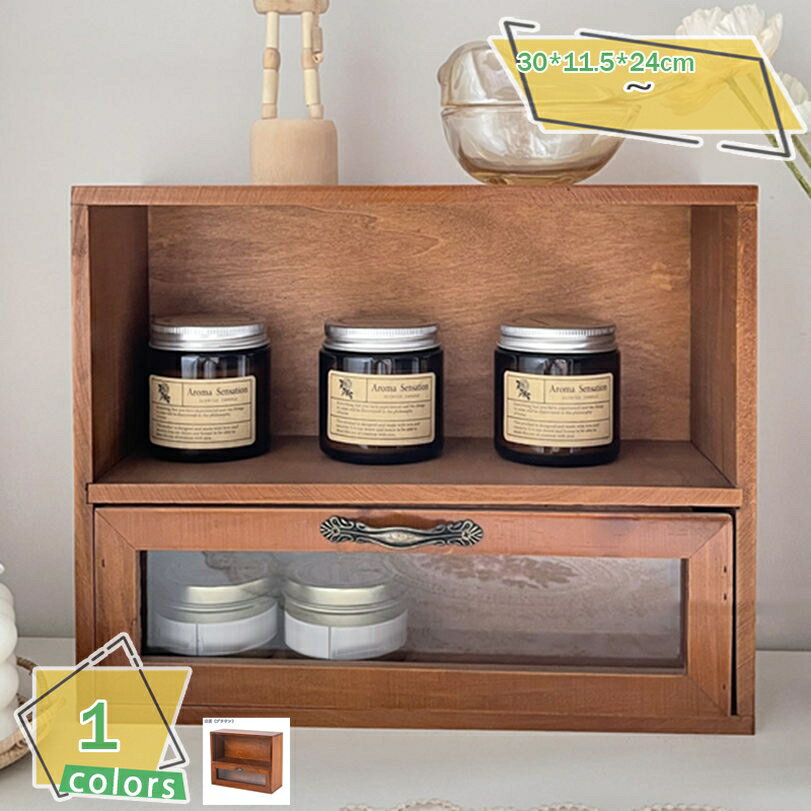 1000円OFFクーポン 収納ボックス 木製 引き出し付き 無垢材 デスク上置棚 事務用品 収納ケー・・・
