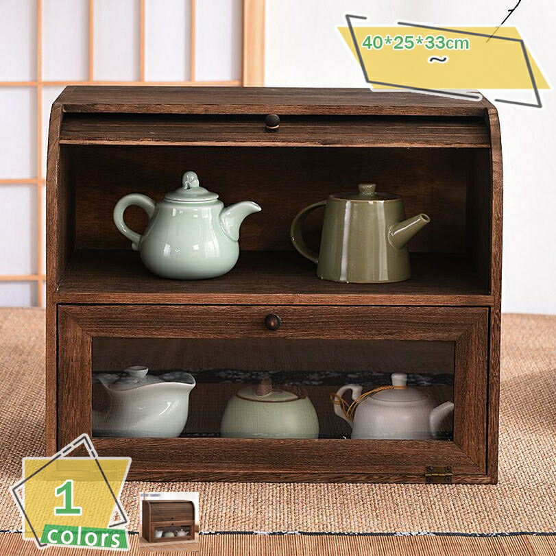 1000円OFFクーポン 食器棚 木製 透明窓 収納キャビネット オシャレ コンパクト 卓上 キッチ・・・