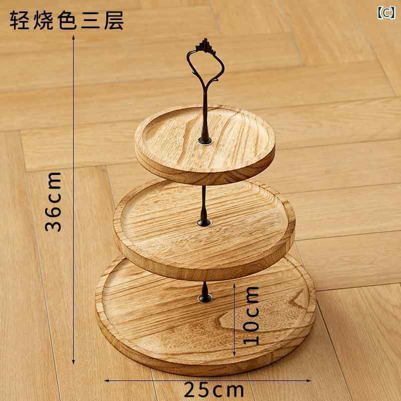 ケーキスタンド 木製 2段 3段 デザート台 ケーキトレイ 飾り台 ディスプレイ台 古白色 重焼色 ・・・