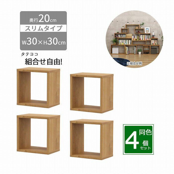 オープンラック スリム 【4個セット】木製 奥行20 幅30 高さ30cm 組合せ自由 収納 隙間 ・・・