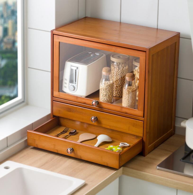ショーケース 木製 卓上収納 ロータイプ 食器棚 キッチン収納ラック 収納棚 スリム 調味料/スパイス おしゃれ 可愛い 目隠し コンパクト 上置き 透明扉 防塵 キッチンラック