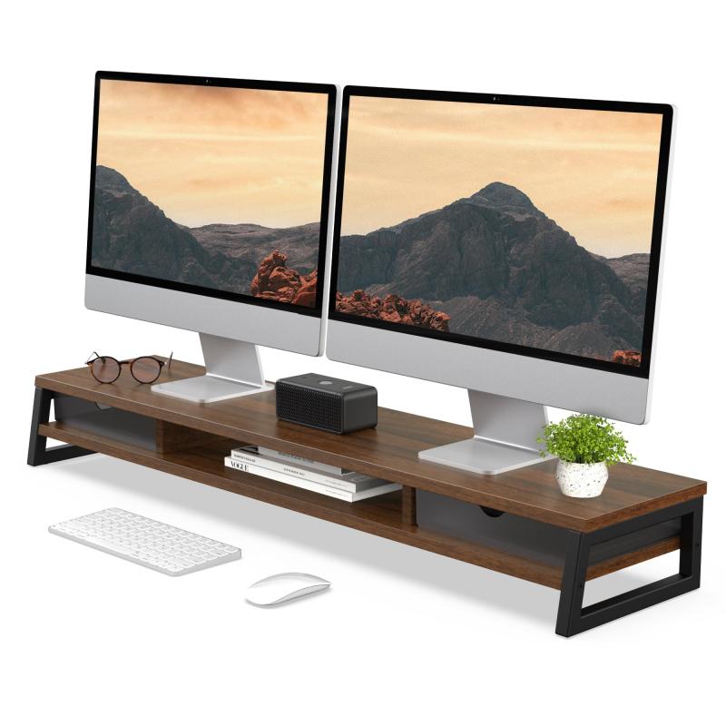 Fenge モニター台 卓上 デスクシェルフ モニタースタンド パソコン台 引き出し付き2段 木製 ・・・