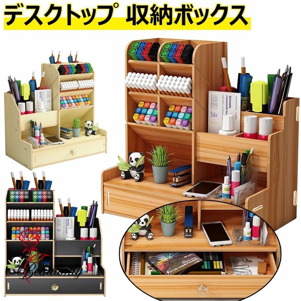 デスクトップ 収納ボックス 木製 卓上ファイル収納ボックス 仕切り 多種類 引き出し収納 コスメボッ・・・
