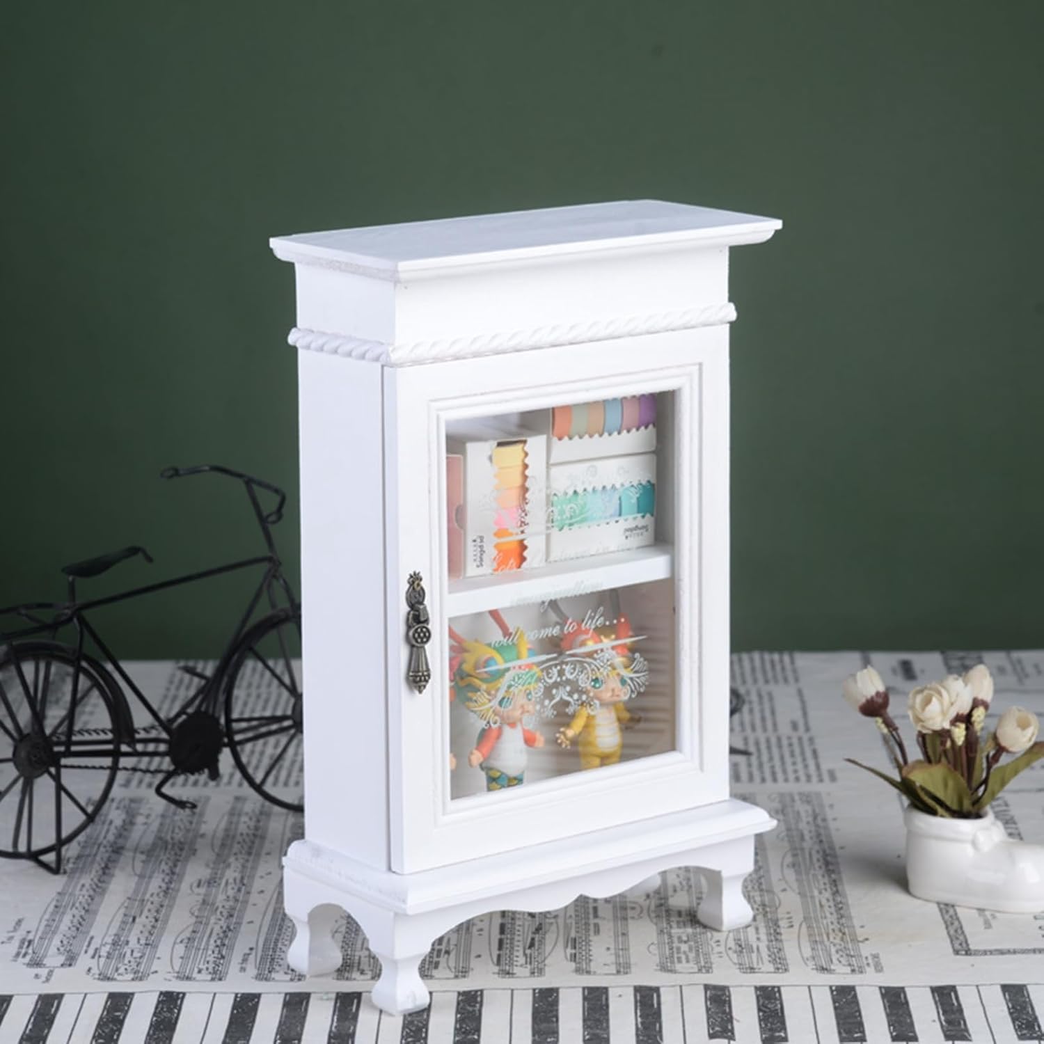 卓上収納ボックス 木製 前開きドア式 小物収納 アンティーク 卓上キャビネット コレクションケース ・・・