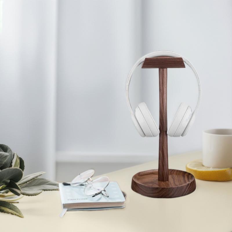 ヘッドホンスタンド ブラックウォールナット 木製 ヘッドセットホルダー デスク収納 卓上 オフィス ・・・