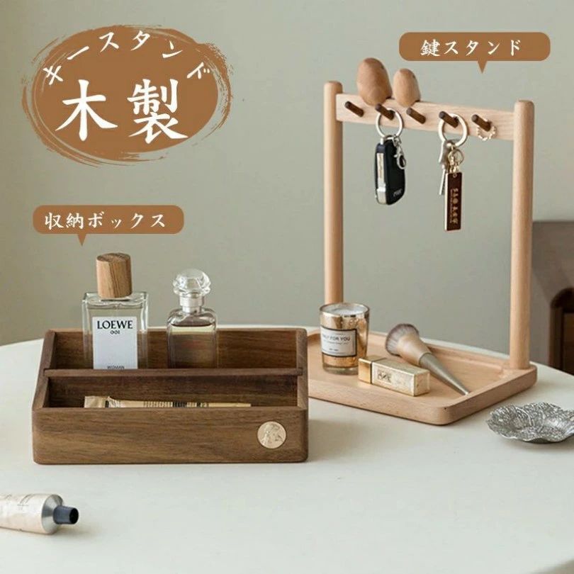 玄関用木製キーラック、小物収納も可能 ナチュラルデザインのキ
