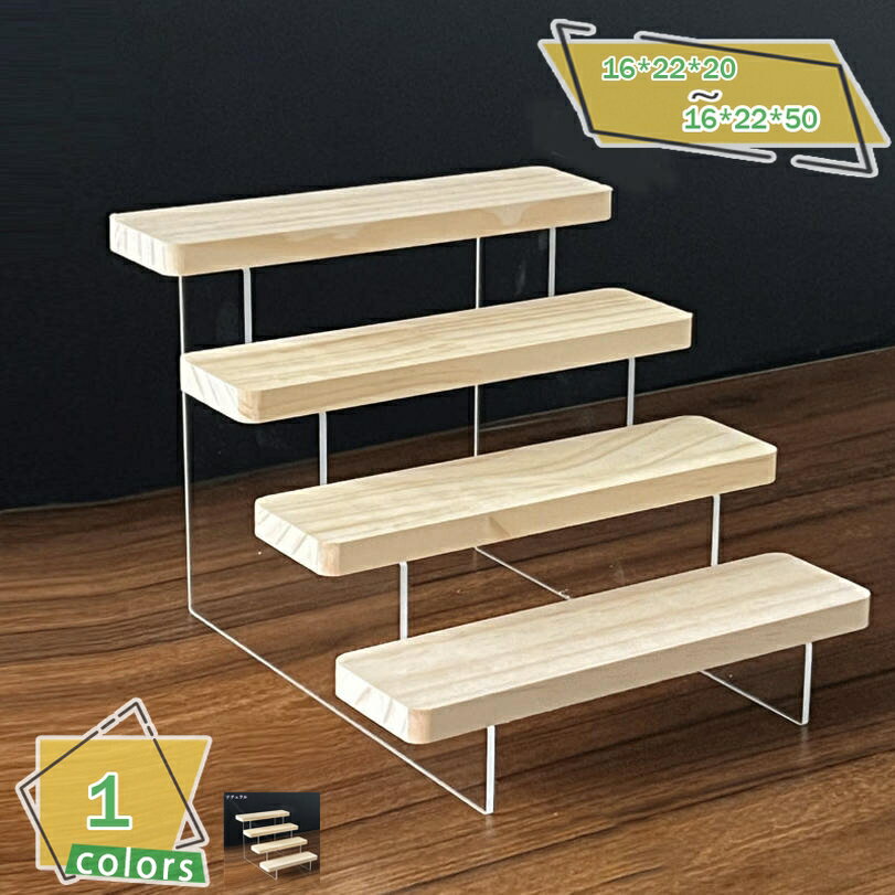 四段 ディスプレイスタンド フィギュア 木製 卓上 アクリルケース 展示台 透明 ディスプレイケース 展示ケース 階段式 ひな壇 コレクションケース 原木色 ショーケース 多層段差構造