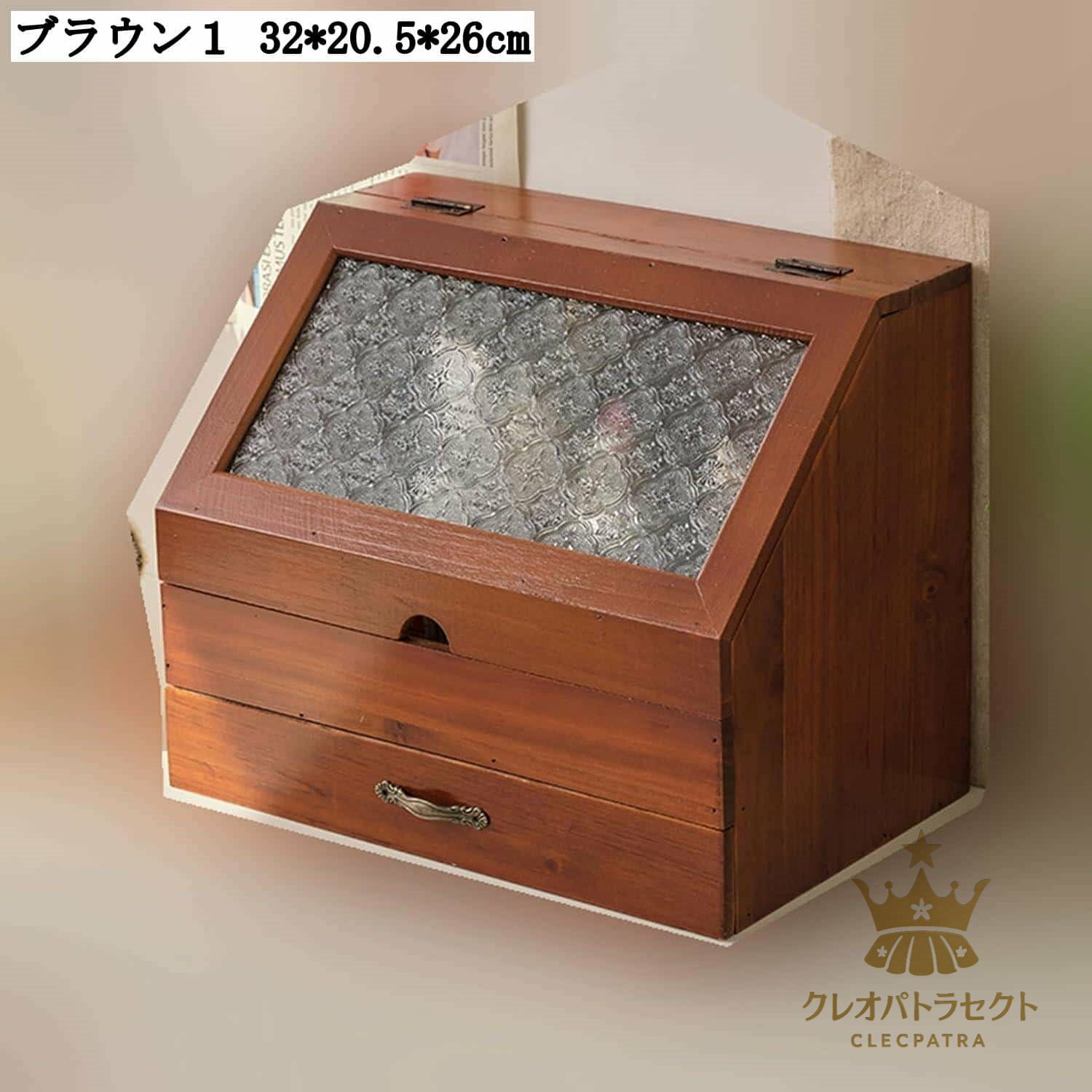 卓上収納ボックス アンティーク 透明窓 引き出し 木製 多機能 大