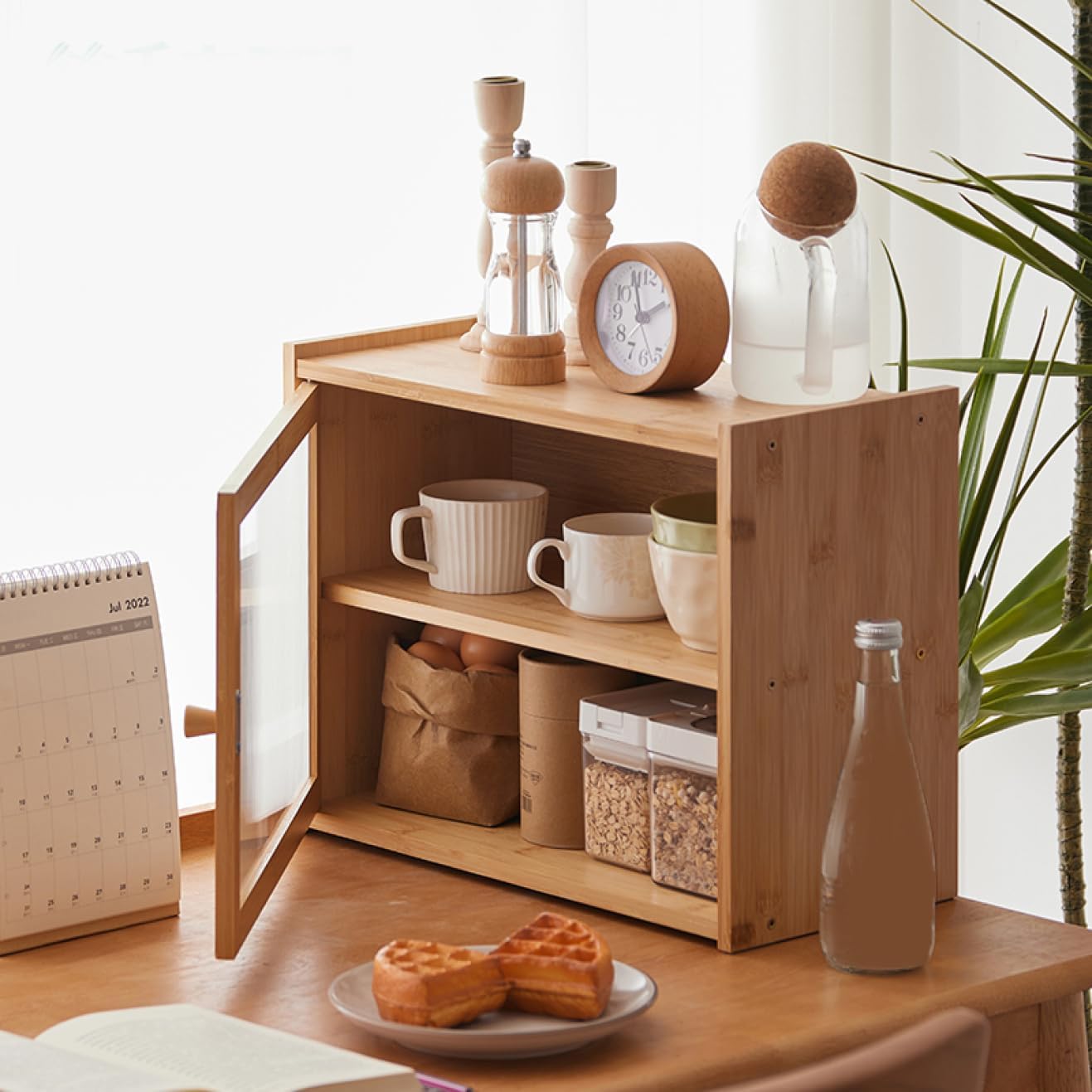 食器棚 ミニ食器棚 収納キャビネット 収納ラック 収納便利 台所収納 おしゃれ アクリル扉付き 防塵 防湿 レンジボード 調味料入れ 鍋 お箸 お椀 小物 キッチン収納 家庭用