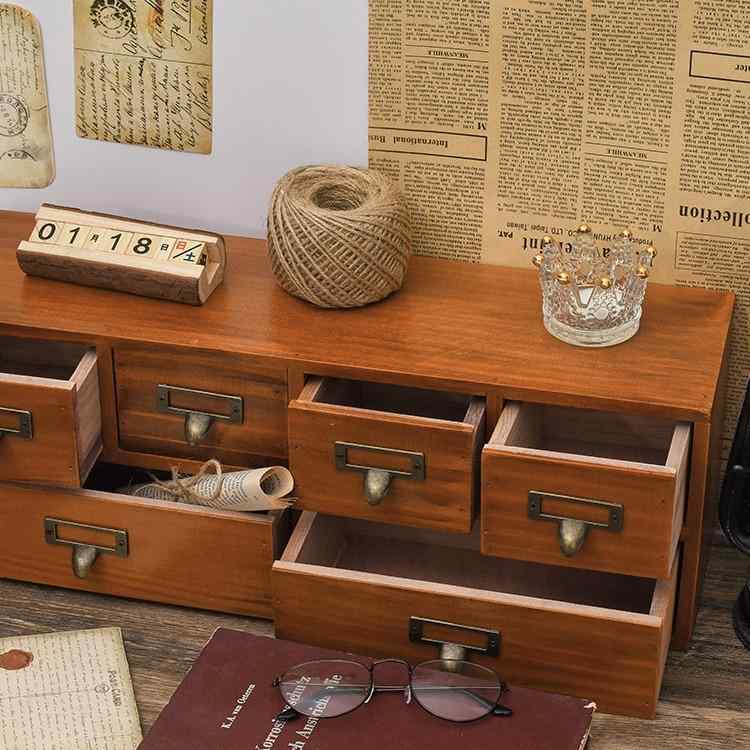卓上収納ケース 化粧品収納 分格 小物収納 木製 アンティーク風 仕切り 卓上 多機能収納 デスクオーガナイザー デスク 収納ケース 多機能