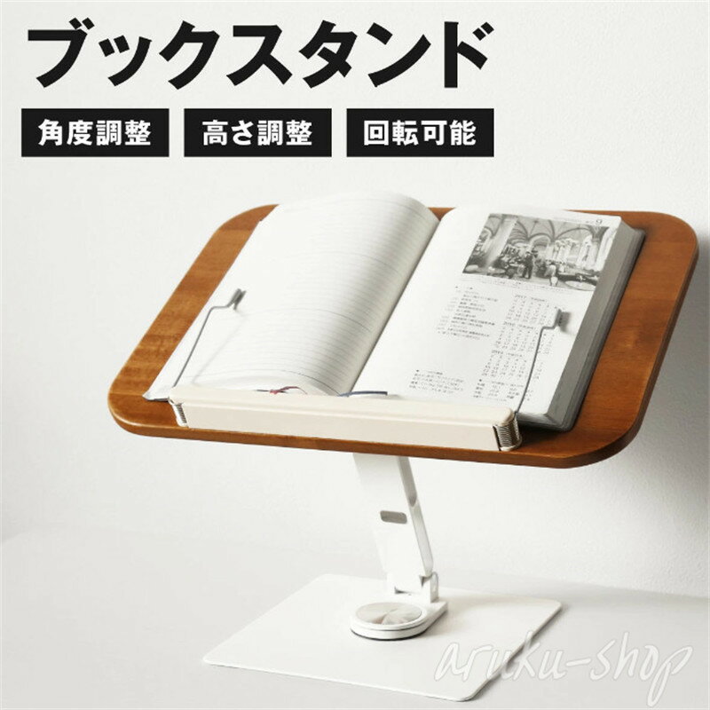 卓上ブックスタンド 木製 見開き レシピスタンド 読書台 本立て 読書スタンド 無垢材 姿勢改善 高さ調整 角度調整 360°回転