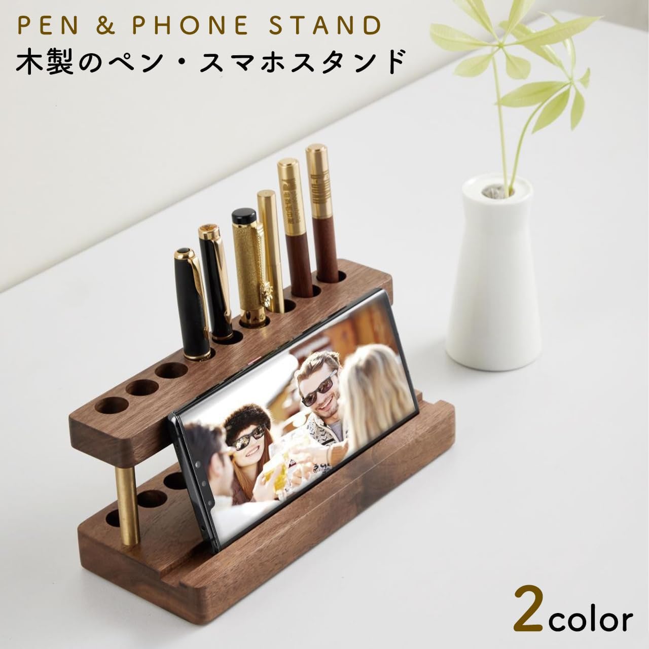 ペン立て & スマホスタンド 木製 おしゃれ ペン 筆 ブラシ スタンド スマホ タブレット 多機能・・・