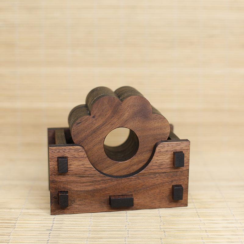 コースター ランチョンマット 木製 ブラックウォルナット 無垢材 天然木 透かし彫り くり抜き 花形・・・