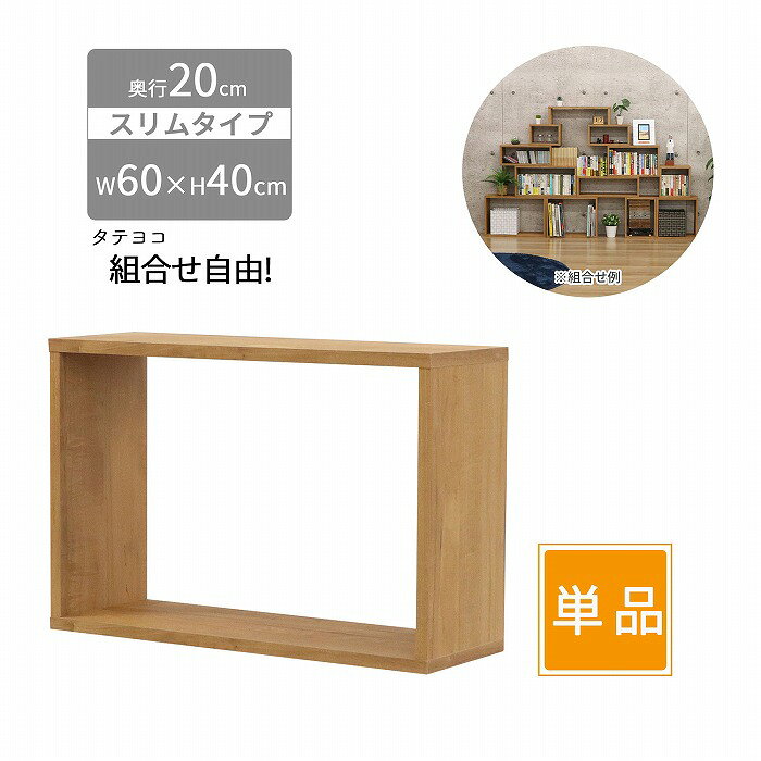 オープンラック スリム 【単品】木製 奥行20 幅60 高さ40cm 組合せ自由 収納 隙間 棚 長・・・
