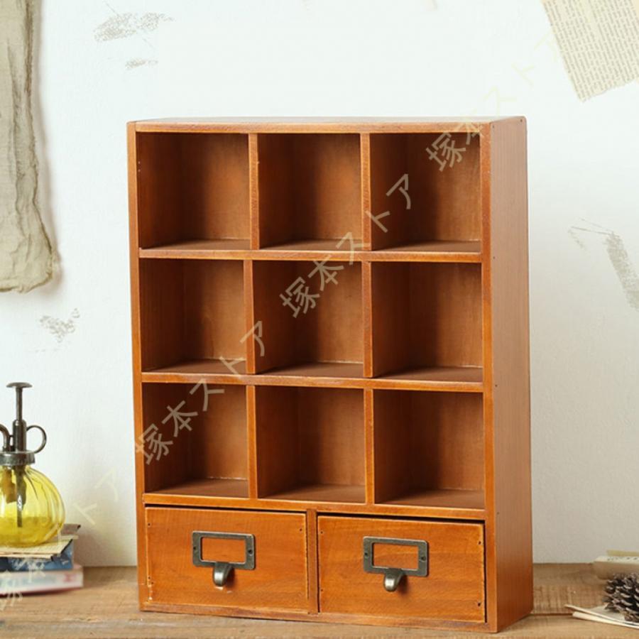 デスク上置き棚 デスク収納 引き出し 木製 卓上収納ケース アンティーク調 大容量 リビングルーム ・・・