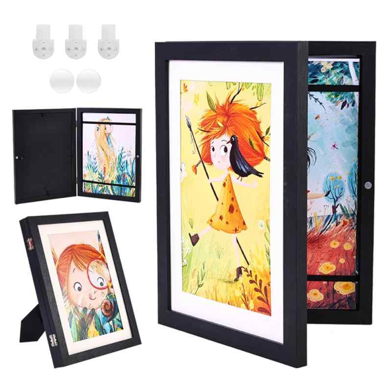 フォトフレーム A4サイズ 長方形 壁掛け 卓上 人工木 子供 絵画 作品 収納 磁石 木製フレーム・・・