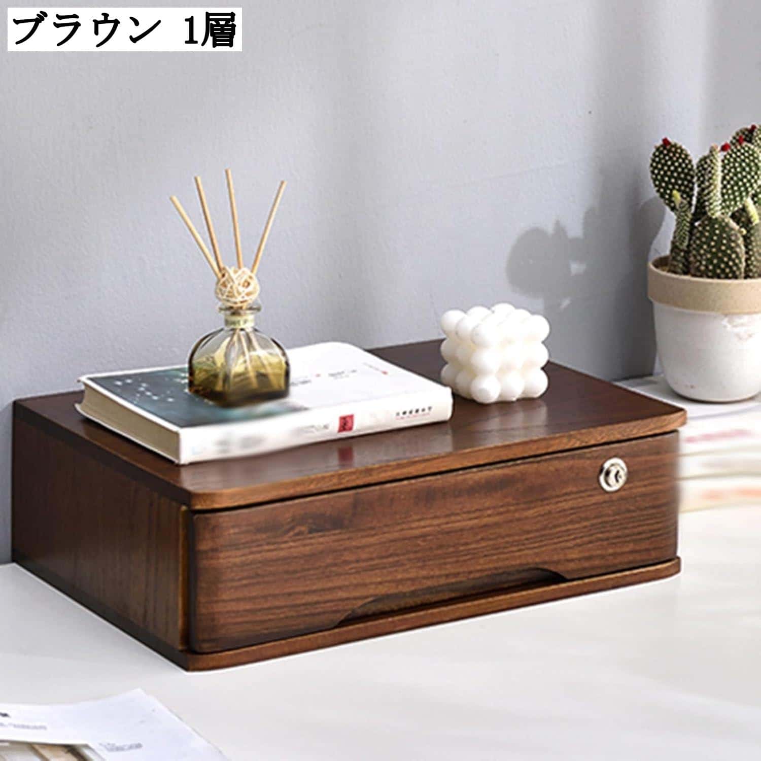 鍵付き 卓上収納ボックス 木製 大容量 小物チェスト 引き出し型 レターケース デスク上置棚 多機能・・・