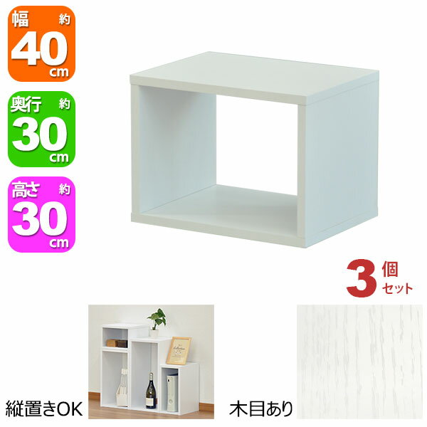 オープンラック 1段 40×30 3個セット 奥行30cm A4対応 収納 棚 ホワイト 白 おしゃれ 組み合わせ自由 幅40cm 高さ30cm 頑丈 耐荷重20kg 積み重ね 収納 ラック ディスプレイラック