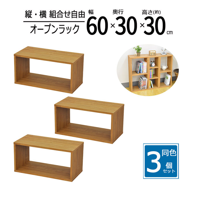 オープンラック 木製 工具不要 3個セット 収納 卓上ラック スパイスラック キッチン ディスプレイラック コミックラック TVラック テレビ台 雑誌 書類 小物整理 オープンシェルフ