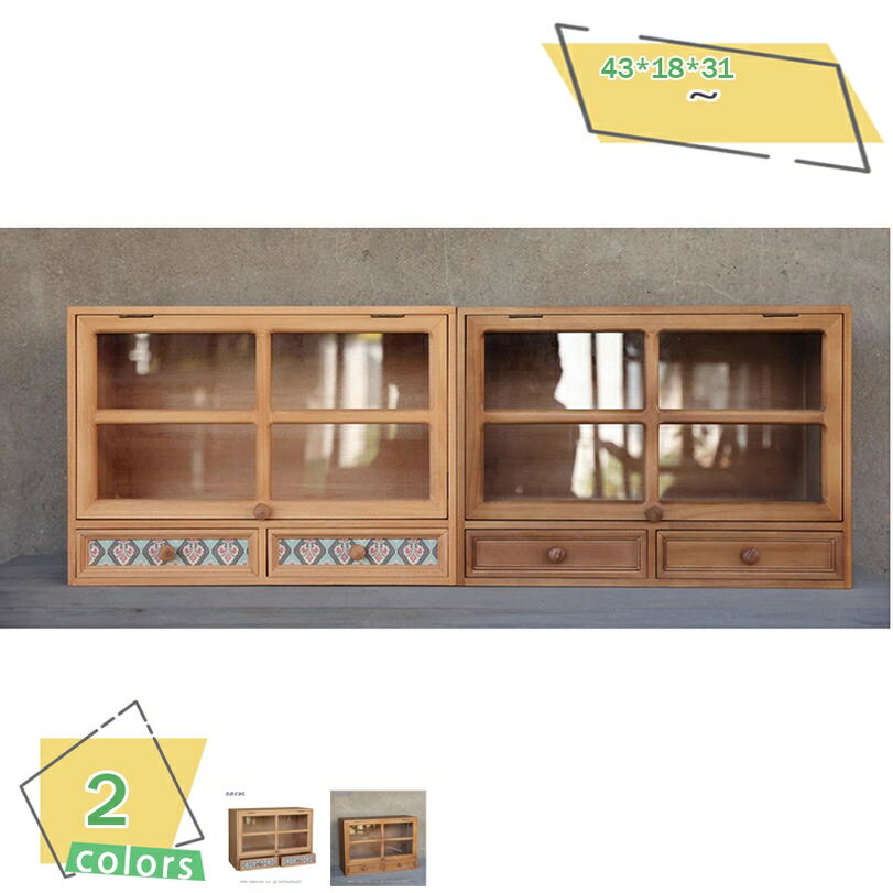 1000円OFFクーポン 食器棚 木製ミニ アンティーク調 収納棚 ガラスケース ショーケース キッ・・・