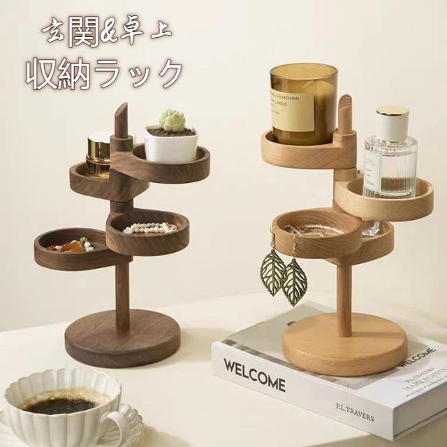 木製 回転式 収納ラック 卓上 小物入れ アクセサリー収納 北欧風 おしゃれ 玄関 キーケース ジュ・・・