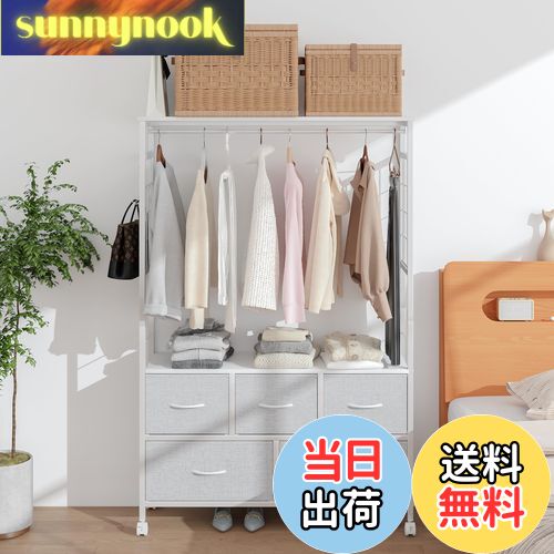 LunarLight ハンガーラック 幅100奥行30高さ150cm パイプハンガー ワードローブ ・・・
