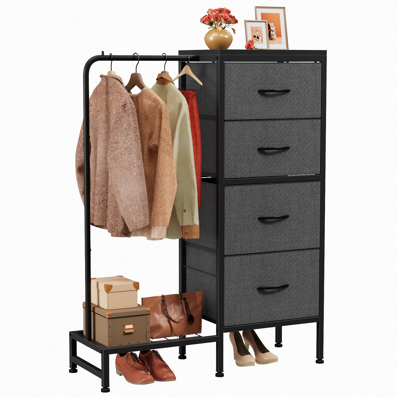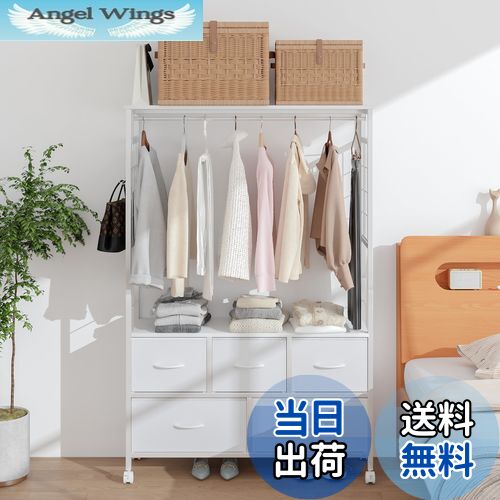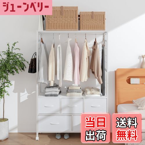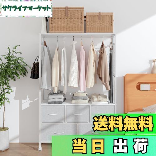ハンガーラック 衣装ケース 4段 引き出し付き 幅37cm×奥行30cm×高さ112cm 収納ケース・・・