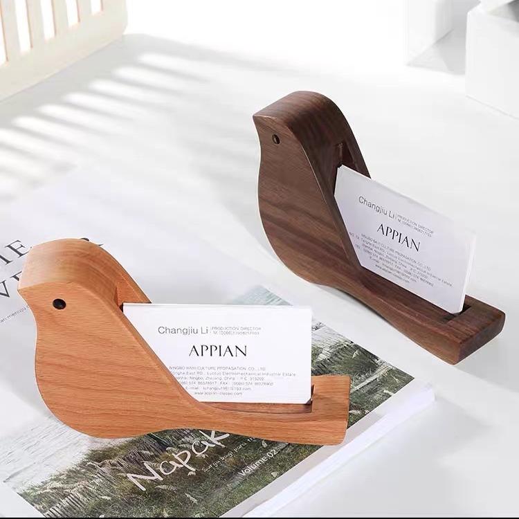 名刺入れ 木製 無垢材 小鳥型 卓上収納 オフィス デスク整理 おしゃれ ユニーク カードスタンド ・・・