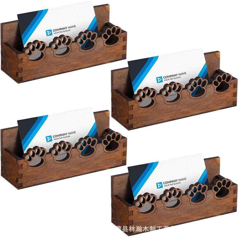 名刺ケース 木製 犬 骨 彫刻 ペット 爪印 名刺 カード スタンド ホルダー デスク収納(x500・・・