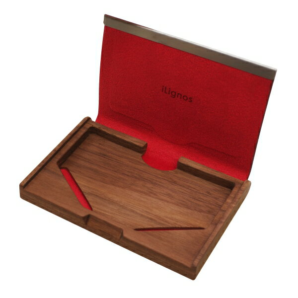 iLignos/アイリグノス 名刺入れ【ウォルナット×レッド】木製・・・