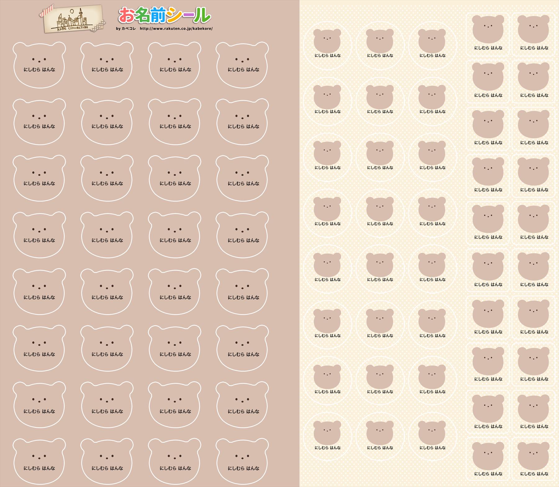 ★メール便限定送料無料★布に貼れちゃう ノンアイロン お名前シール くま 動物 くすみ かわいい ア・・・