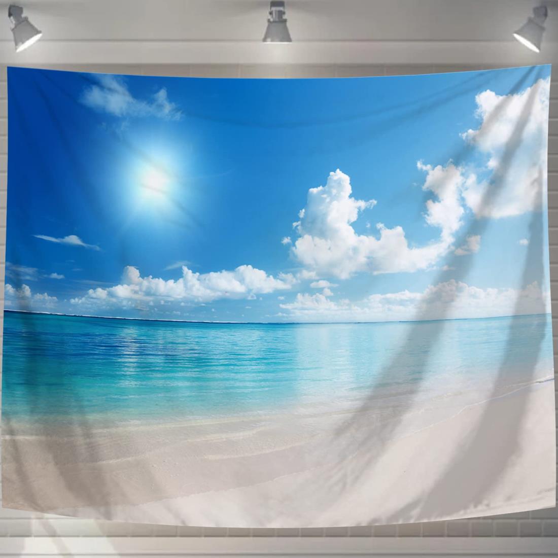 砂浜の風景タペストリー 青い空と海辺の椰子の木 インテリア 多機能壁掛け ファブリック装飾用品 おしゃれ モダンなアート 模様替え 部屋 窓カーテン 大判 癒し 部屋 飾り付け 窓