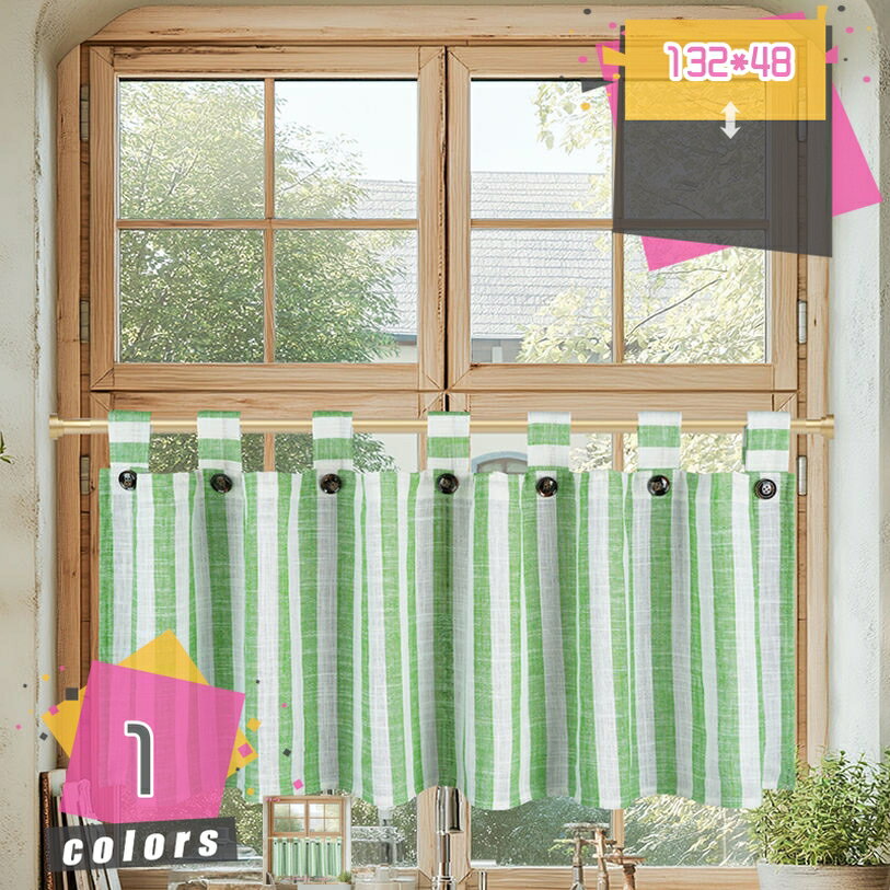 500円OFFクーポン カフェカーテン 小窓カーテン 目隠し ストライプ柄 北欧風 間仕切り デコレ・・・