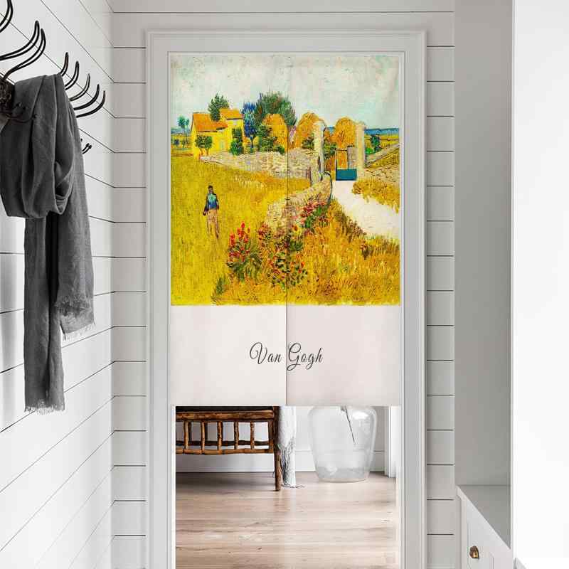 のれん 抽象画 油絵風プリント 装飾 インテリア ポリエステル 目隠し 間仕切り リビング 寝室 キ・・・