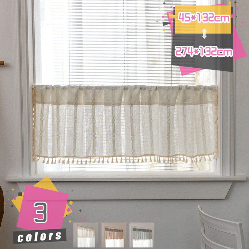 500円OFFクーポン カフェカーテン カーテン 北欧 無地 間仕切り 目隠し 取り付け簡単 タッセ・・・