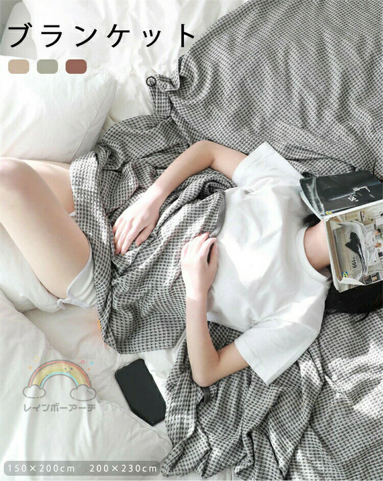 ガーゼケット シングル/ダブル 夏掛け布団 チェック柄 冷房対策 ソファー 洗える タオルケット 1・・・