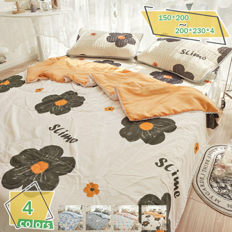 フラワー柄 ブランケット シングル コットン 夏掛け布団 両面柄 オールシーズン 夏のキルト 掛け布団 タオル布団 速乾 夏布団 北欧風 薄掛け ダブル 薄手の布団 肌掛け布団