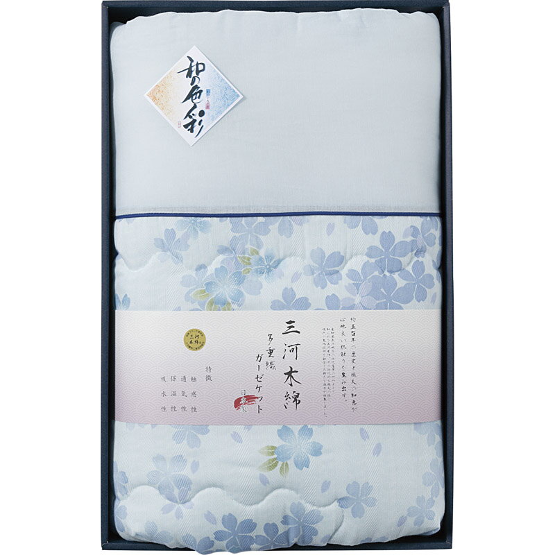 愛知三河木綿 ダブルガーゼ 肌布団 ブルー WK1021[tr]・・・