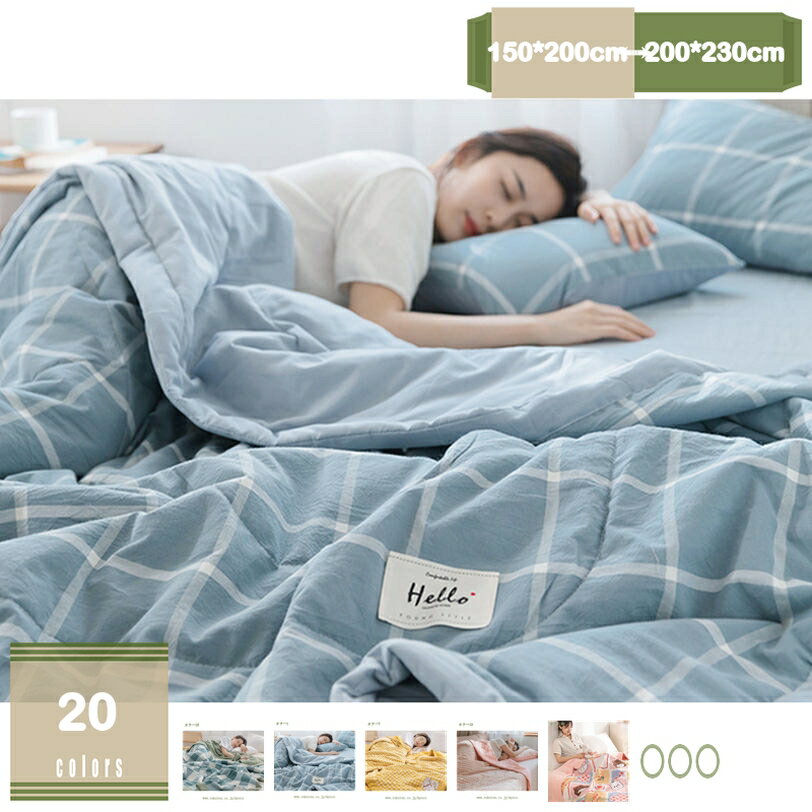 タオルケット 洗える 綿100% 150×200cm シングル 夏物寝具 ガーゼケット 夏用薄手キルト 夏 秋 冬 寝具 寝汗 吸水 速乾 チェック柄 肌掛け布団 夏掛け布団 ストライプ柄 掛布団