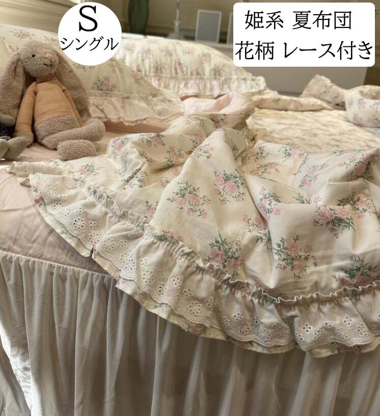 【送料無料】夏布団 夏掛け布団 可愛い 花柄 レース 姫系 綿 S シングル 150*200cm 冷・・・
