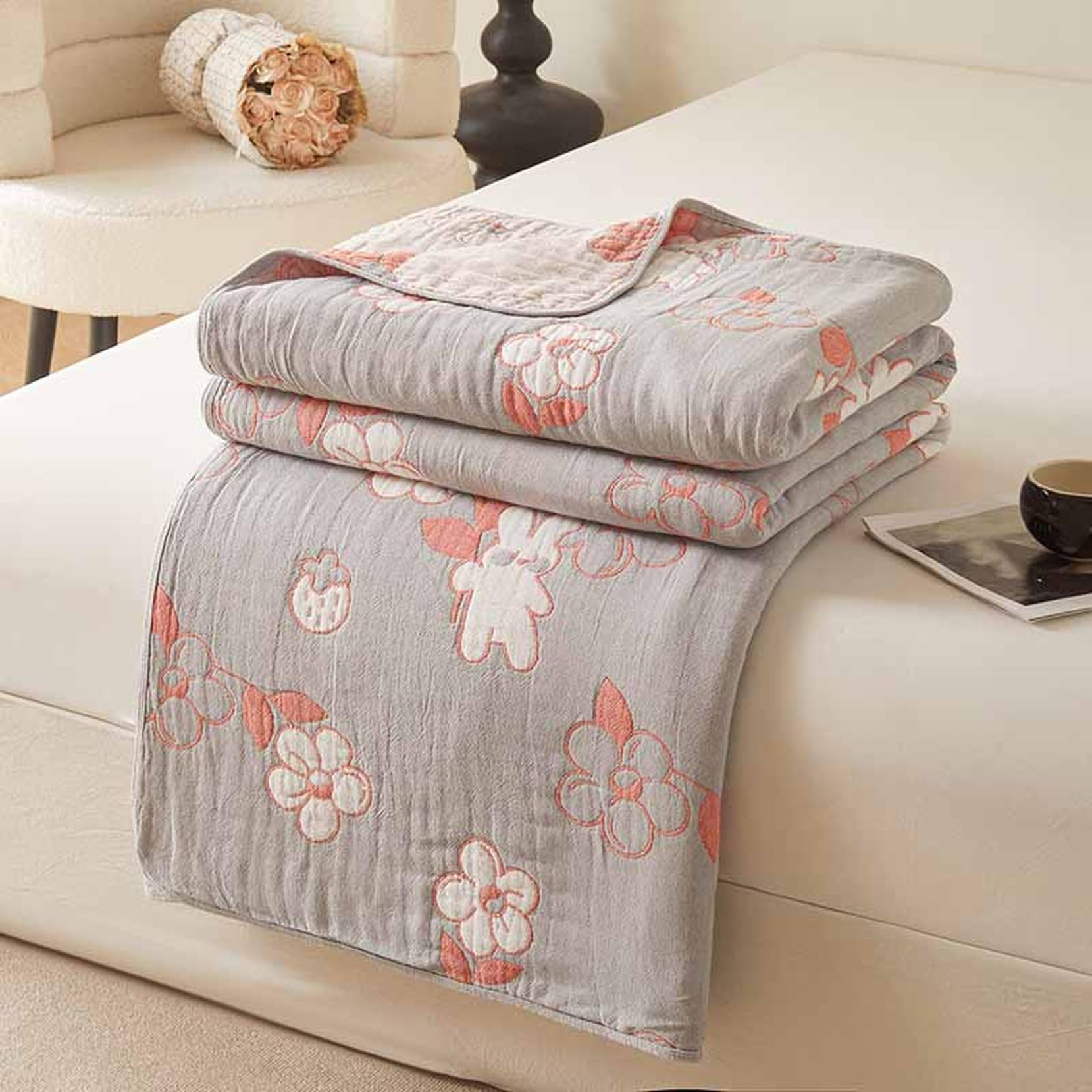 ガーゼケット 4重織 サマーキルト 子供用 夏布団 北欧風 植物 シングル ダブル 肌掛け 綿100% やわらか 速乾 快適 安眠 夏掛け布団
